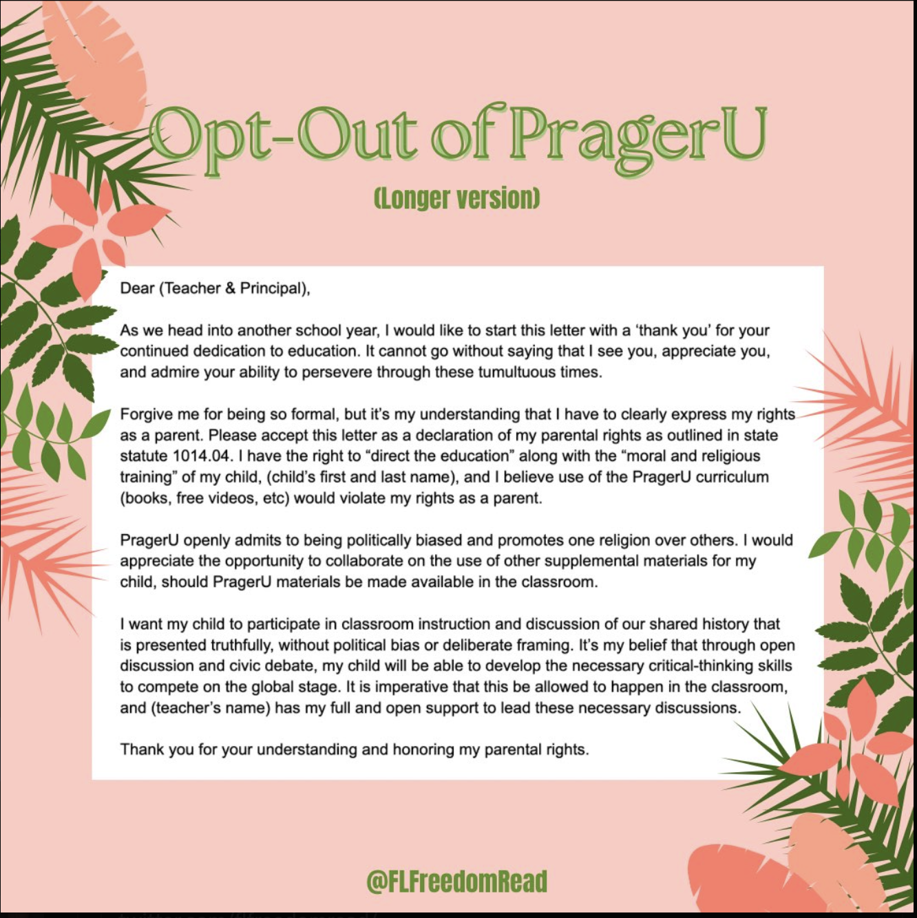 More directly, if you do find that PragerU is being used in your student’s classrooms, opt them out. You can do so with a simple letter to the teacher and principal of the school, and we have provided examples for you to use below. You do not have to allow your students to be subjected to an incorrect, whitewashed, politically skewed version of American history and ideals.